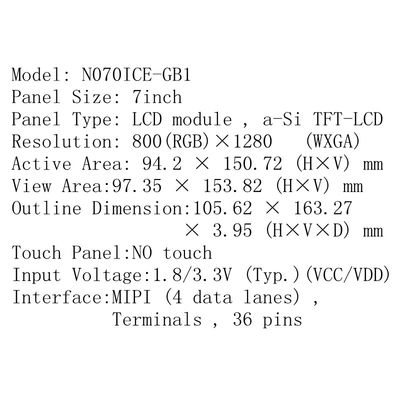 ماژول صفحه نمایش 7 اینچی TFT-LCD با وضوح 800 * 1280 WXGA با فناوری IPS برای زاویه های دید گسترده و بازتولید رنگ عالی.