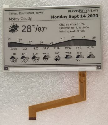 این پنل صفحه نمایش کاغذ الکترونیکی TFT (EPD) با ماتریس فعال a-Si 4.2 اینچی دارای وضوح استثنایی (120 نقطه در اینچ) برای نمایش الگوهای خوب و گرافیک های دقیق است. ماهیت دو پایدار فناوری EPD حداقل مصرف انرژی را در طول به روز رسانی و انرژی صفر مورد نیاز برای حفظ تصاویر نمایش داده شده را تضمین می کند.